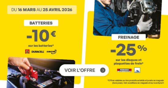 Du 16 mars au 25 avril 2026, profitez des promotions sur les batteries* et sur les disques et plaquettes de frein* […]